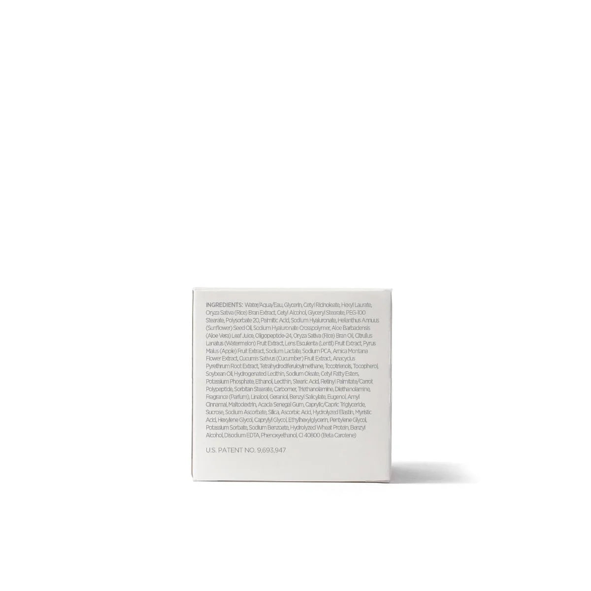 Water/Aqua/Eau, Glycerin, Cetyl Ricinoleate, Hexyl Laurate, Oryza Sativa (Rice) Bran Extract, Cetyl Alcohol, Glyceryl Stearate, PEG-100 Stearate, Polysorbate 20, Palmitic Acid, Sodium Hyaluronate, Helianthus Annuus (Sunflower) Seed Oil, Sodium Hyaluronate Crosspolymer, Aloe Barbadensis (Aloe Vera) Leaf Juice, Oligopeptide-24, Oryza Sativa (Rice) Bran Oil, Citrullus Lanatus (Watermelon) Fruit Extract, Lens Esculenta (Lentil) Fruit Extract, Pyrus Malus (Apple) Fruit Extract, Sodium Lactate, Sodium PCA, Arnica Montana Flower Extract, Cucumis Sativus (Cucumber) Fruit Extract, Anacyclus Pyrethrum Root Extract, Tetrahydrodiferuloylmethane, Tocotrienols, Tocopherol, Soybean Oil, Hydrogenated Lecithin, Sodium Oleate, Cetyl Fatty Esters, Potassium Phosphate, Ethanol, Lecithin, Stearic Acid, Retinyl Palmitate/Carrot Polypeptide, Sorbitan Stearate, Carbomer, Triethanolamine, Diethanolamine, Fragrance, Linalool, Geraniol, Benzyl Salicylate, Eugenol, Amyl Cinnamal, Maltodextrin, Acacia Senegal Gum, Caprylic/Capric Triglyceride, Sucrose, Sodium Ascorbate, Silica, Ascorbic Acid, Hydrolyzed Elastin, Myristic Acid, Hexylene Glycol, Caprylyl Glycol, Ethylhexylglycerin, Pentylene Glycol, Potassium Sorbate, Sodium Benzoate, Hydrolyzed Wheat Protein, Benzyl Alcohol, Disodium EDTA, Phenoxyethanol, CI 40800 (Beta Carotene)