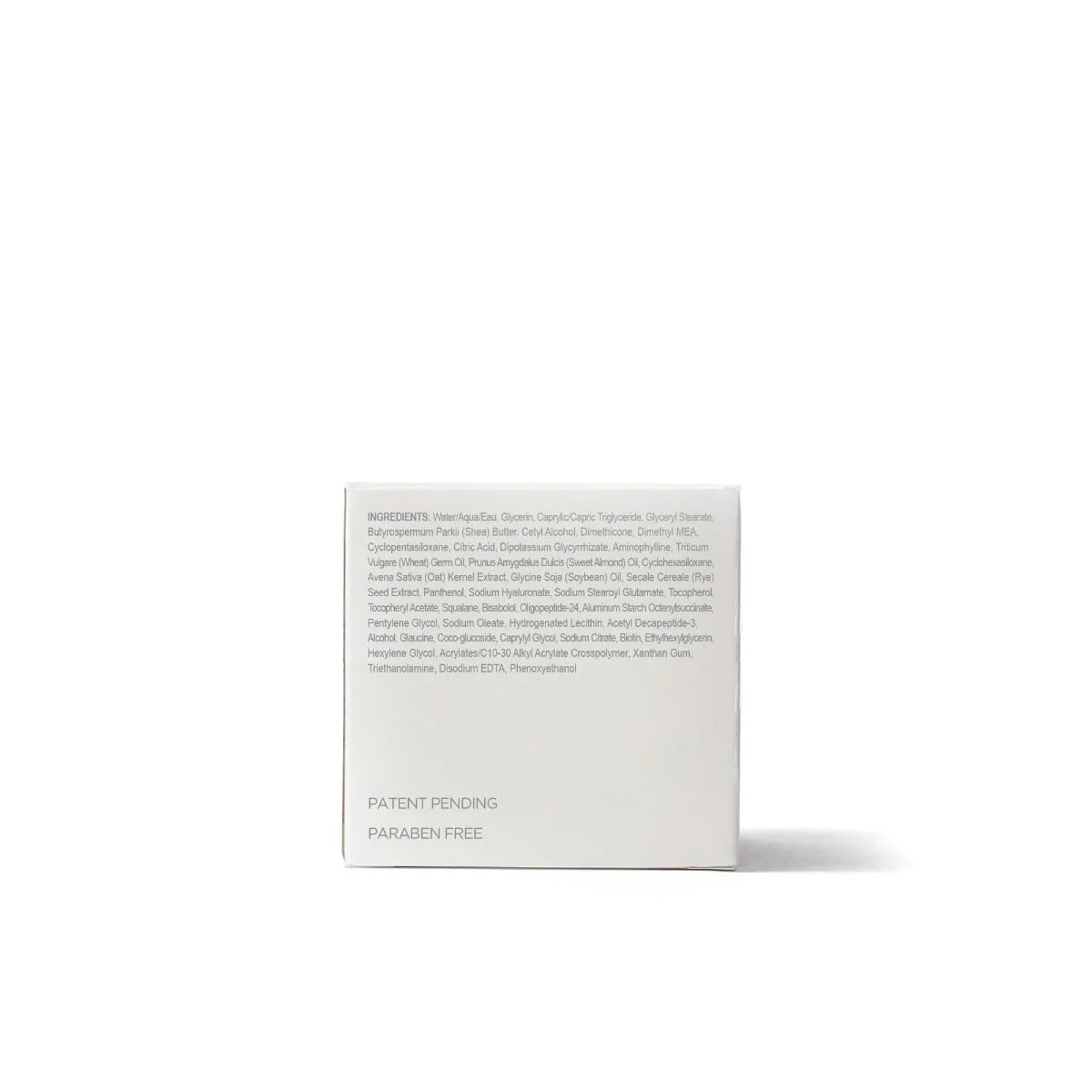 Water/Aqua/Eau, Glycerin, Caprylic/Capric Triglyceride, Glyceryl Stearate, Butyrospermum Parkii (Shea) Butter, Cetyl Alcohol, Dimethicone, Dimethyl MEA, Cyclopentasiloxane, Citric Acid, Dipotassium Glycyrrhizate, Aminophylline, Triticum Vulgare (Wheat) Germ Oil, Prunus Amygdalus Dulcis (Sweet Almond) Oil, Cyclohexasiloxane, Avena Sativa (Oat) Kernel Extract, Glycine Soja (Soybean) Oil, Secale Cereale (Rye) Seed Extract, Panthenol, Sodium Hyaluronate, Sodium Stearoyl Glutamate, Tocopherol, Tocopheryl Acetate, Squalane, Bisabolol, Oligopeptide-24, Aluminum Starch Octenylsuccinate, Pentylene Glycol, Sodium Oleate, Hydrogenated Lecithin, Acetyl Decapeptide-3, Ethyl Alcohol, Glaucine, Coco-glucoside, Caprylyl Glycol, Sodium Citrate, Biotin, Ethylhexylglycerin, Hexylene Glycol, Acrylates/C10-30 Alkyl Acrylate Crosspolymer, Xanthan Gum, Triethanolamine, Disodium EDTA, Phenoxyethanol