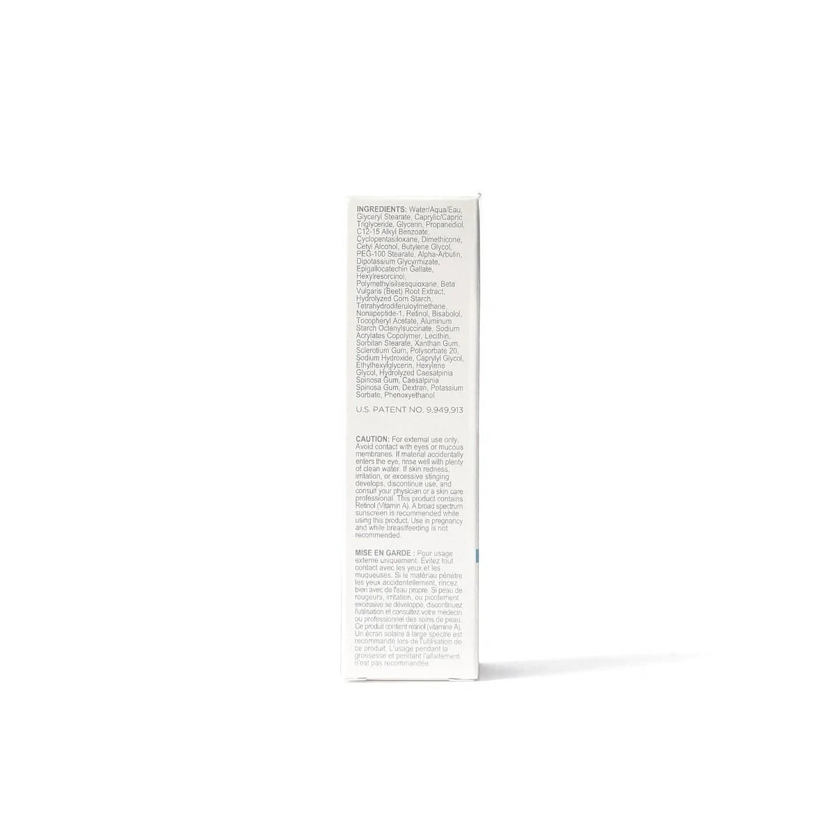Water/Aqua/Eau, Glyceryl Stearate, Caprylic/Capric Triglyceride, Glycerin, Propanediol, C12-15 Alkyl Benzoate, Cyclopentasiloxane, Dimethicone, Cetyl Alcohol, Butylene Glycol, PEG-100 Stearate, Alpha-Arbutin, Dipotassium Glycyrrhizate, Epigallocatechin Gallate, Hexylresorcinol, Polymethylsilsesquioxane, Beta Vulgaris (Beet) Root Extract, Hydrolyzed Corn Starch, Tetrahydrodiferuloylmethane, Nonapeptide-1, Retinol, Bisabolol, Tocopheryl Acetate, Aluminum Starch Octenylsuccinate, Sodium Acrylates Copolymer, Lecithin, Sorbitan Stearate, Xanthan Gum, Sclerotium Gum, Polysorbate 20, Sodium Hydroxide, Caprylyl Glycol, Ethylhexylglycerin, Hexylene Glycol, Hydrolyzed Caesalpinia Spinosa Gum, Caesalpinia Spinosa Gum, Dextran, Potassium Sorbate, Phenoxyethanol